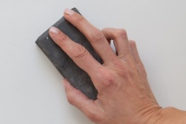 Si nécessaire, poncez avec un papier de verre très fin (grain de 200) lorsque l’enduit est bien sec.