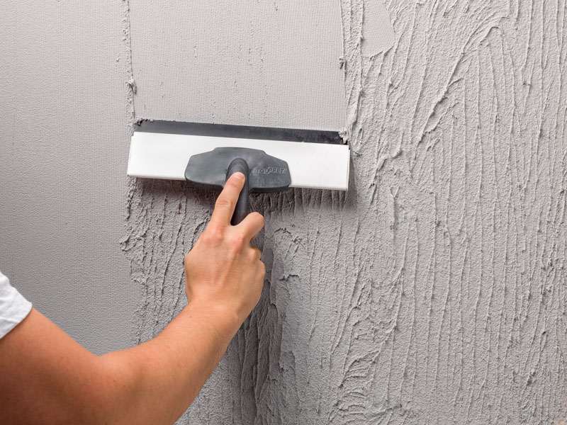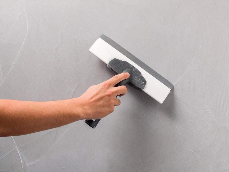 dans le frais avec le lisseur à lame Liss dure avec un angle fermé, les motifs créés en 1re passe se révéleront ainsi. Pour un décor plus nuancé et doux au toucher, repasser délicatement sur l’enduit le lisseur à lame Liss dure afin de resserrer le grain.